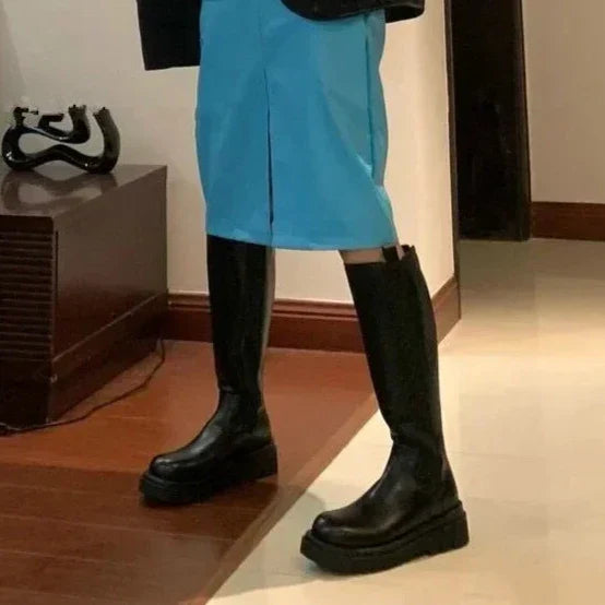 Pelle di alta qualità: Realizzati in pelle premium, questi stivali alti non solo sono resistenti e durevoli, ma anche incredibilmente raffinati. La pelle liscia e lucente aggiunge un tocco di lusso al tuo look, garantendo al contempo protezione dagli elementi atmosferici. Robusta ma morbida al tatto, questa pelle di qualità assicura un comfort prolungato e un aspetto impeccabile nel tempo, facendoti sentire sempre al top.